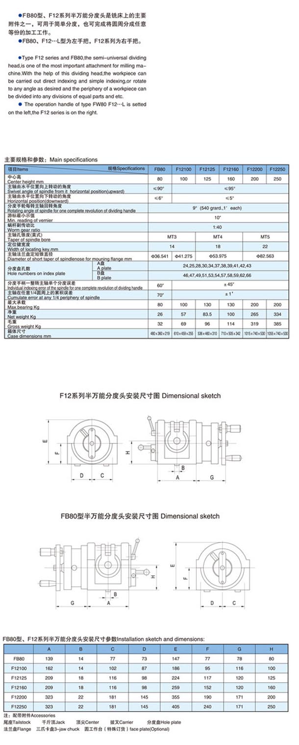FB80型F12系列半萬(wàn)能分度頭