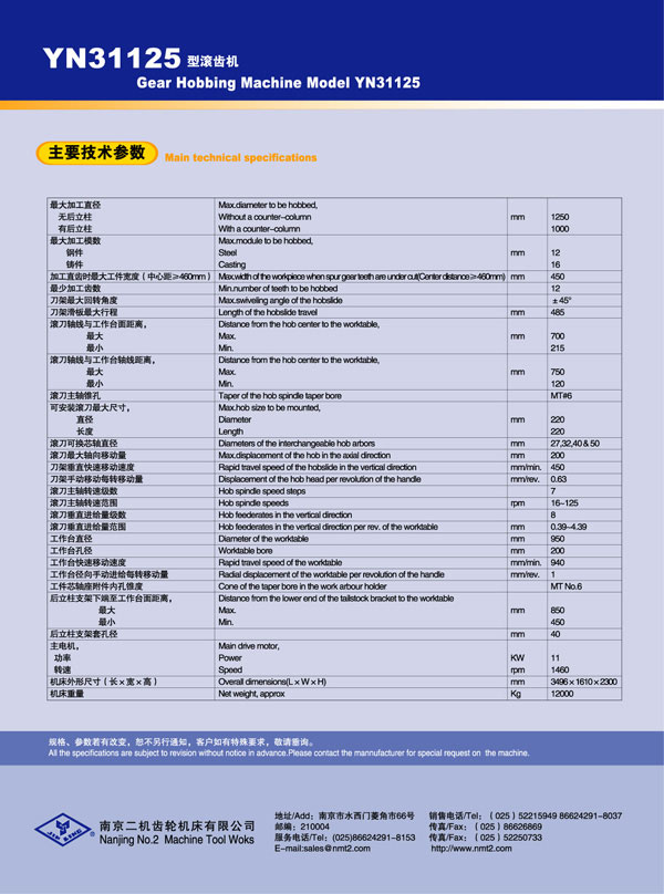 YN31125滾齒機