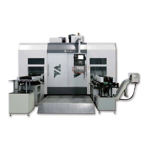 該機(jī)床具備六個(gè)直線進(jìn)給軸,兩個(gè)主軸配合C軸可以分別實(shí)現(xiàn)三軸聯(lián)動(dòng)加工。